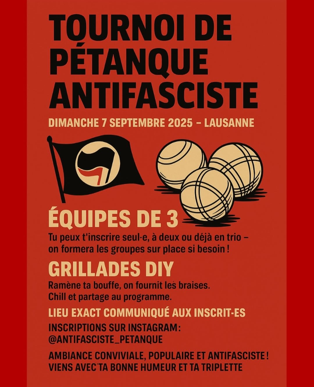 7 septembre 2025 à la Valencienne (Lausanne), pour le tournoi de pétanque antifasciste