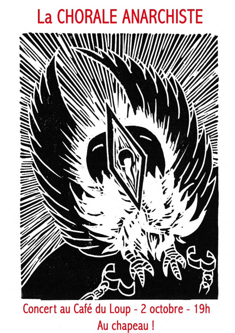 Depuis le printemps 2018, la chorale anarchiste chante un lundi sur deux à l’espace autogéré (rue César-Roux 30, Lausanne) et lors de divers événements et manifestations à Lausanne et ailleurs (plus d’info ici). Il n’est pas trop tard pour nous rejoindre, bienvenue à tout le monde !