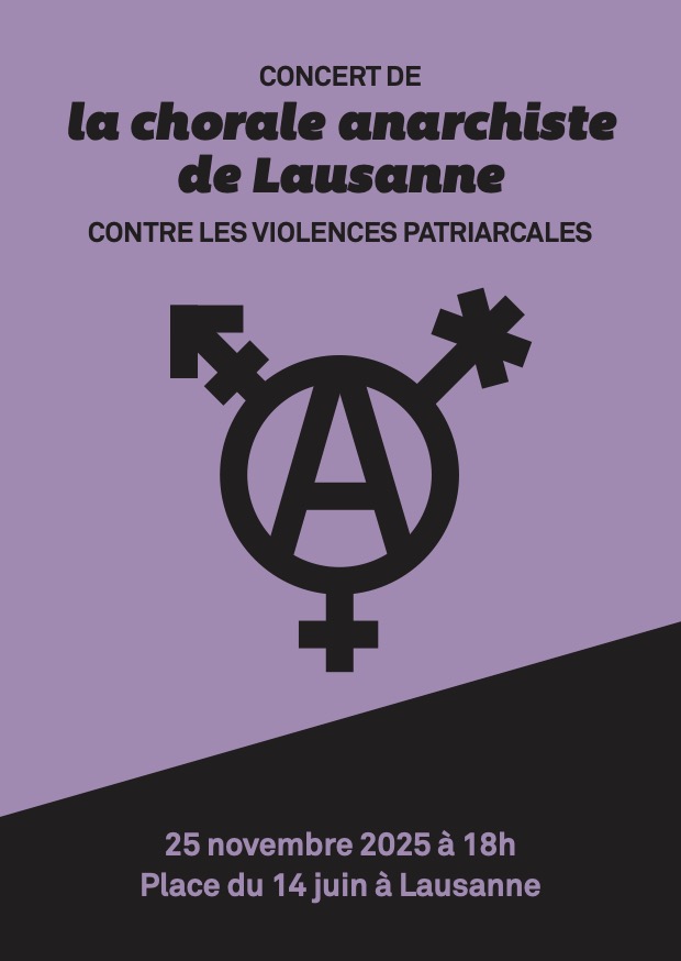 Depuis le printemps 2018, la chorale anarchiste chante un lundi sur deux à l’espace autogéré (rue César-Roux 30, Lausanne) et lors de divers événements et manifestations à Lausanne et ailleurs (plus d’info ici). Il n’est pas trop tard pour nous rejoindre, bienvenue à tout le monde !